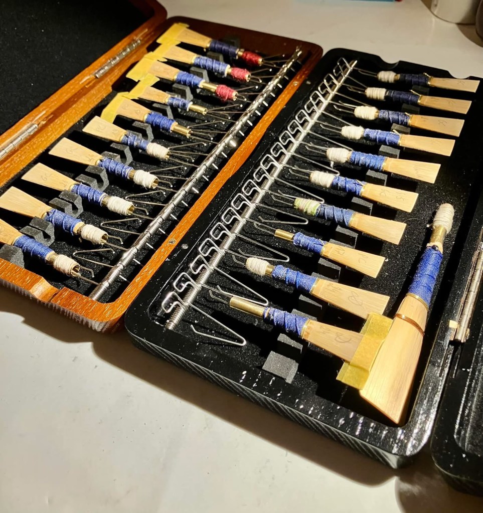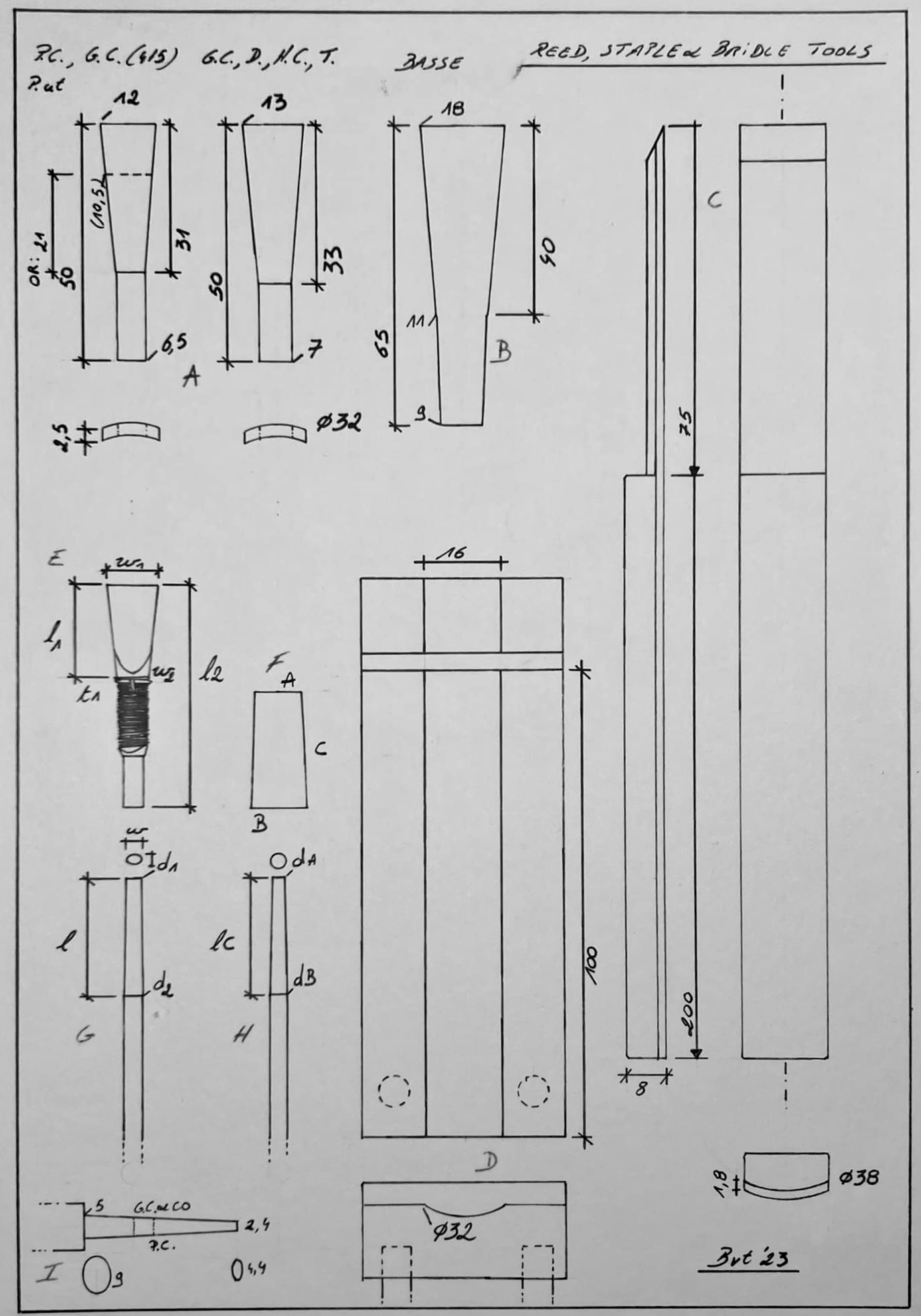 - You need a lot of tools. Few of those are readily available, but most can be made with a little bit of patience. You can also contact me (bartvantroyen@gmail.com) and see which ones I have for sale. If your tools are not precise and fit for the job, your chances of making a good reed are slim.